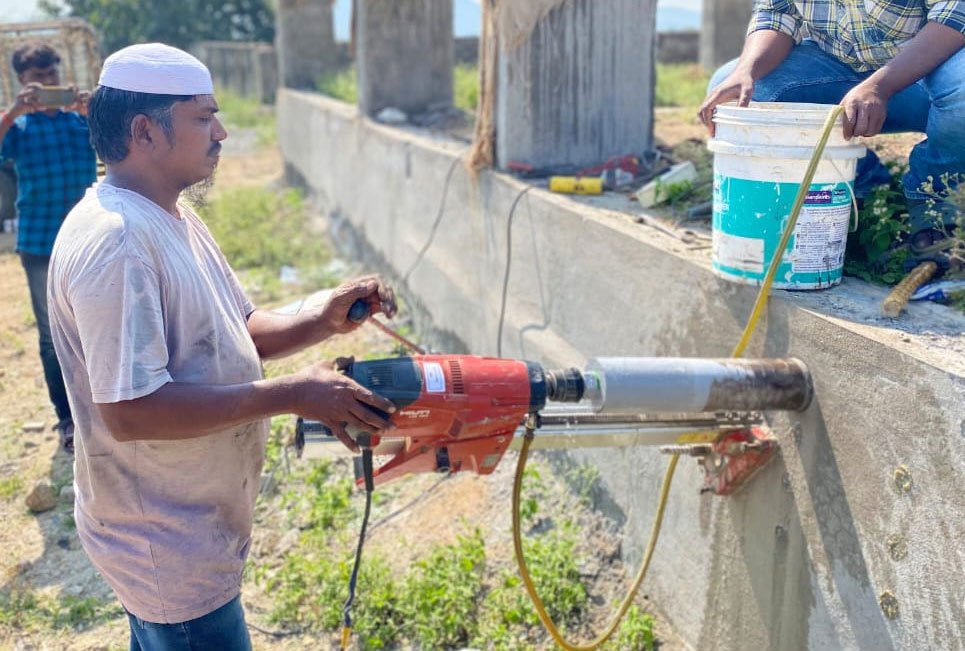 Core cutting involves extracting cylindrical core samples from concrete or rock structures to evaluate their internal strength, composition, and integrity. This is an essential non-destructive method that allows us to test the compressive strength of existing concrete slabs, columns, and foundations without damaging the entire structure. At Dhanya Shri, we use high-precision drilling machines and diamond-tipped core cutters to retrieve samples safely and efficiently. The extracted cores are then analyzed in our lab for parameters such as compressive strength, porosity, and internal defects. Core cutting is especially valuable in renovation, repair, or extension projects, where understanding the existing structure is crucial. It also helps in quality control of newly cast concrete by verifying consistency and mix quality. Our experienced technicians ensure minimal disruption during the process and follow all safety standards. Through core cutting, we provide clients with critical insights that influence retrofitting decisions, structural evaluations, and compliance with building codes.